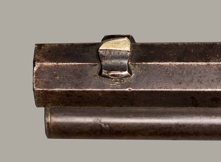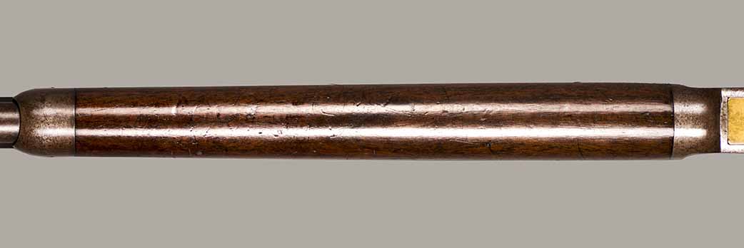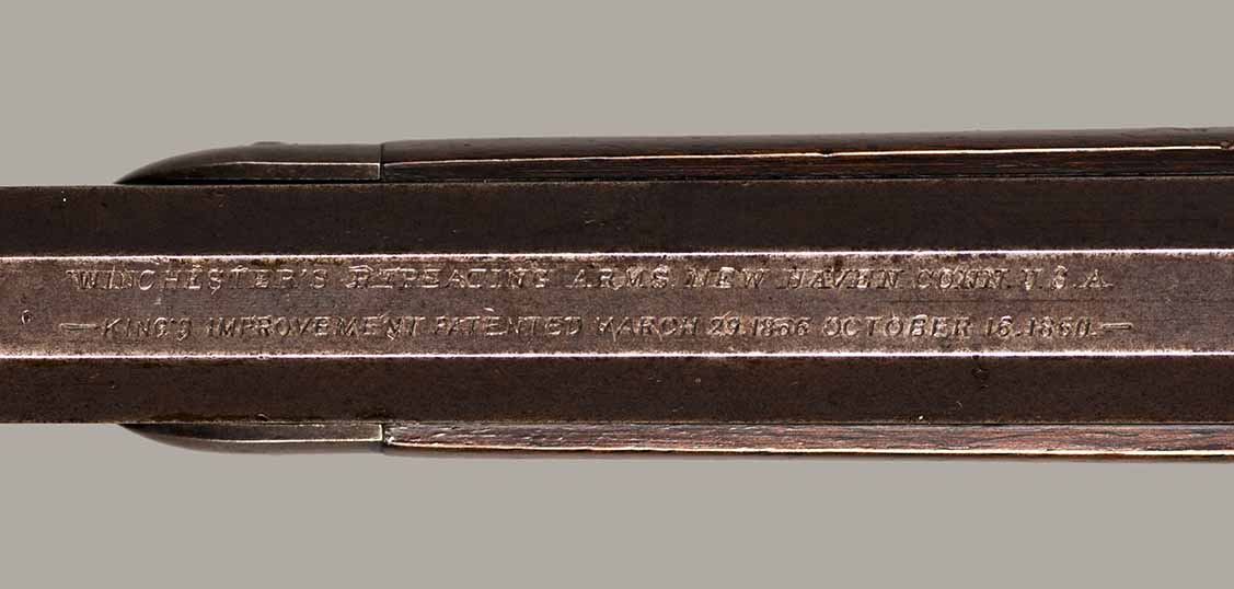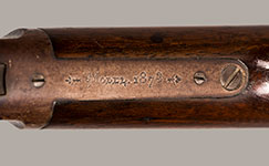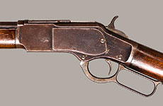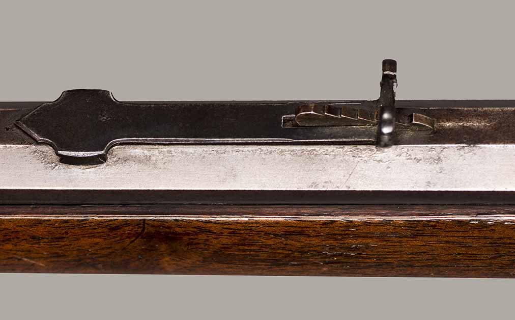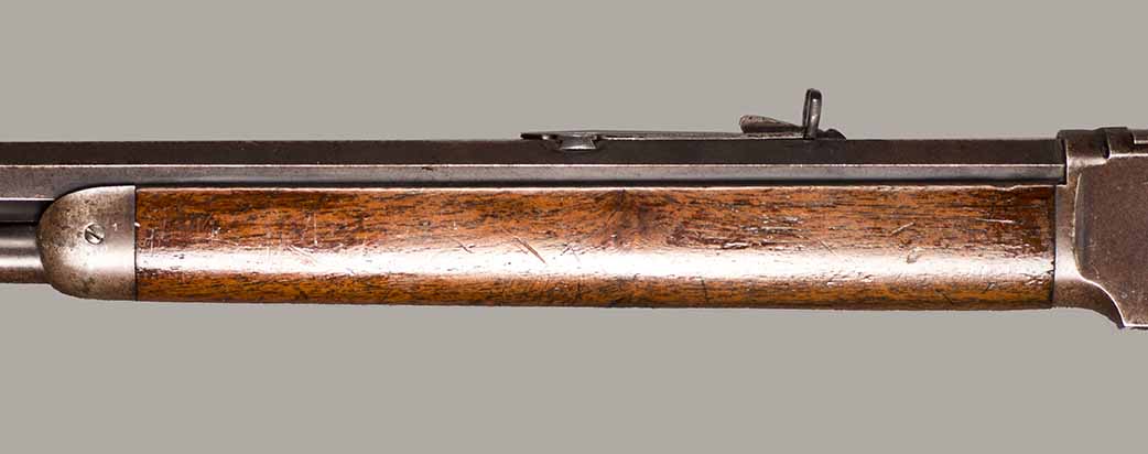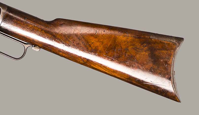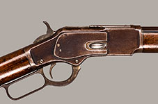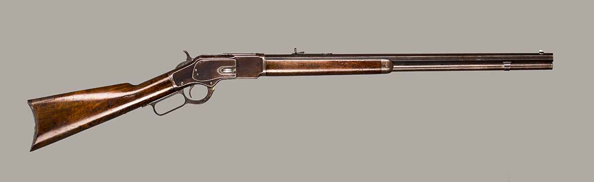 #386249B. Cal 38-40 WCF. Third Model. 24"inch octagonal barrel Rifle. Rifle retains about 30% overall original blue, the balance is a nice brown patina.Original sights include a German silver blade front and typical sporting rear. Mechanically perfect with a near mint bore. Very nice wood with a few traces of handling and storage. Gun was made in 1890! Total production of the Model 1873 WInchester was 720.609. A rifle in a far above average condition! Very fine! Cartridges shown for information purposes only.